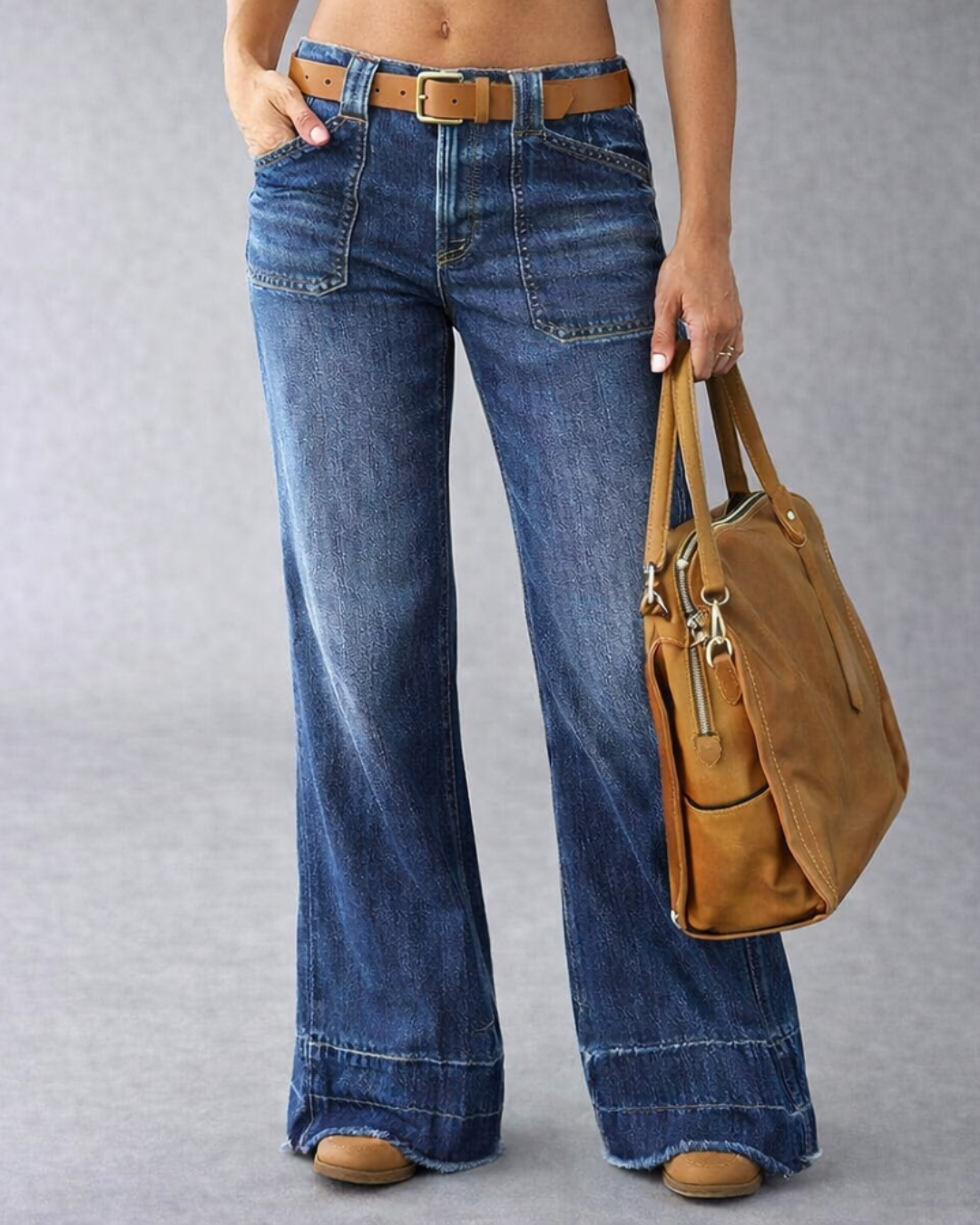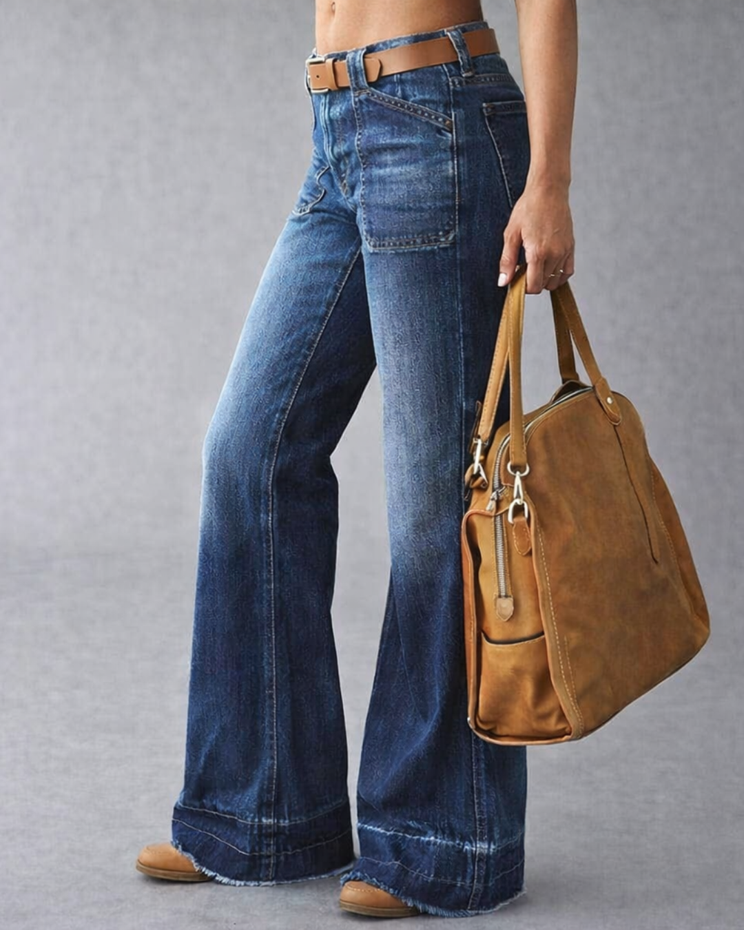 Datorită echilibrului dintre confort și stil, acești blugi evazați sunt extrem de versatilitate. Funcționează perfect cu toate platformele cu aspect mai formal și stilat, cu pantofi sport cu o combinație casual de zi și zi, cu o notă de personalitate retro.