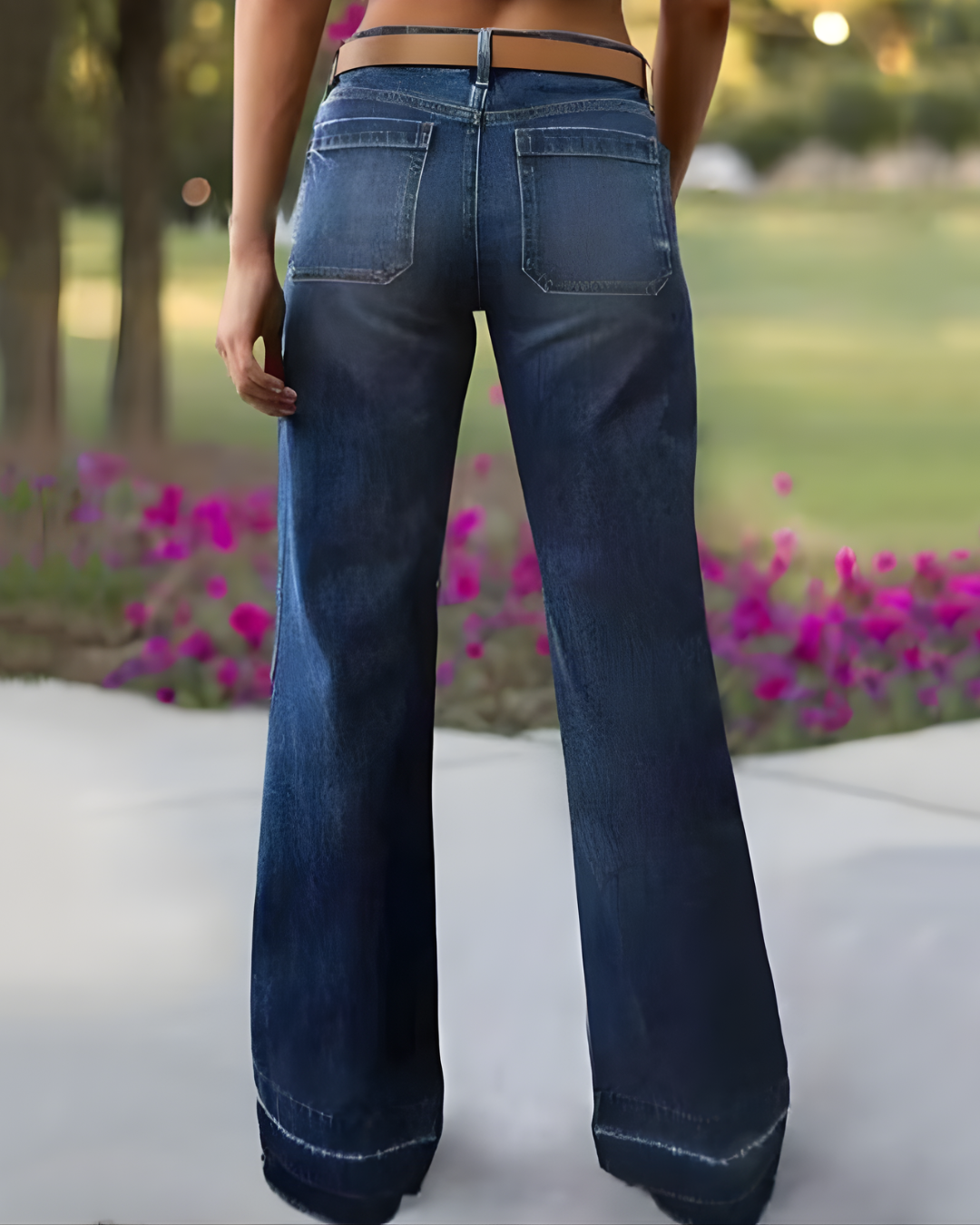 Acești blugi surprind esența modei retro cu o croială evazată care alungește imaginile. Silhouette lor iconică, mulată pe coapse și long of the genunchi până gleznă, this ideală pentru cei care care captă un stil boem și sophisticat care nu se demodează niciodată.