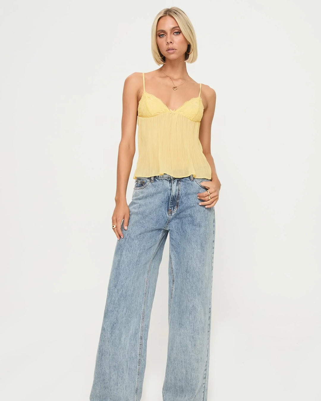 Bretelele subțiri și decolteul delicate pun subtil în valoare decolteul. Dantela lucrată adaugă o notă de rafinament, făcând acest articol de îmbrăcăminte perfect pentru o varietate de ocazii.